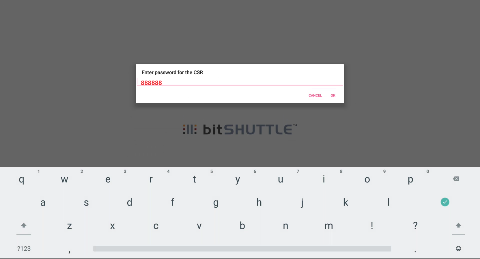 - When the Command prompt appears, enter '888888' to access the bitshuttle menu